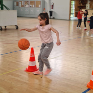 Le but de ces séances était d'être capable de manipuler le ballon de basket, se déplacer en dribblant, se passer la balle de différentes façons et de trouver des techniques pour marquer des paniers.